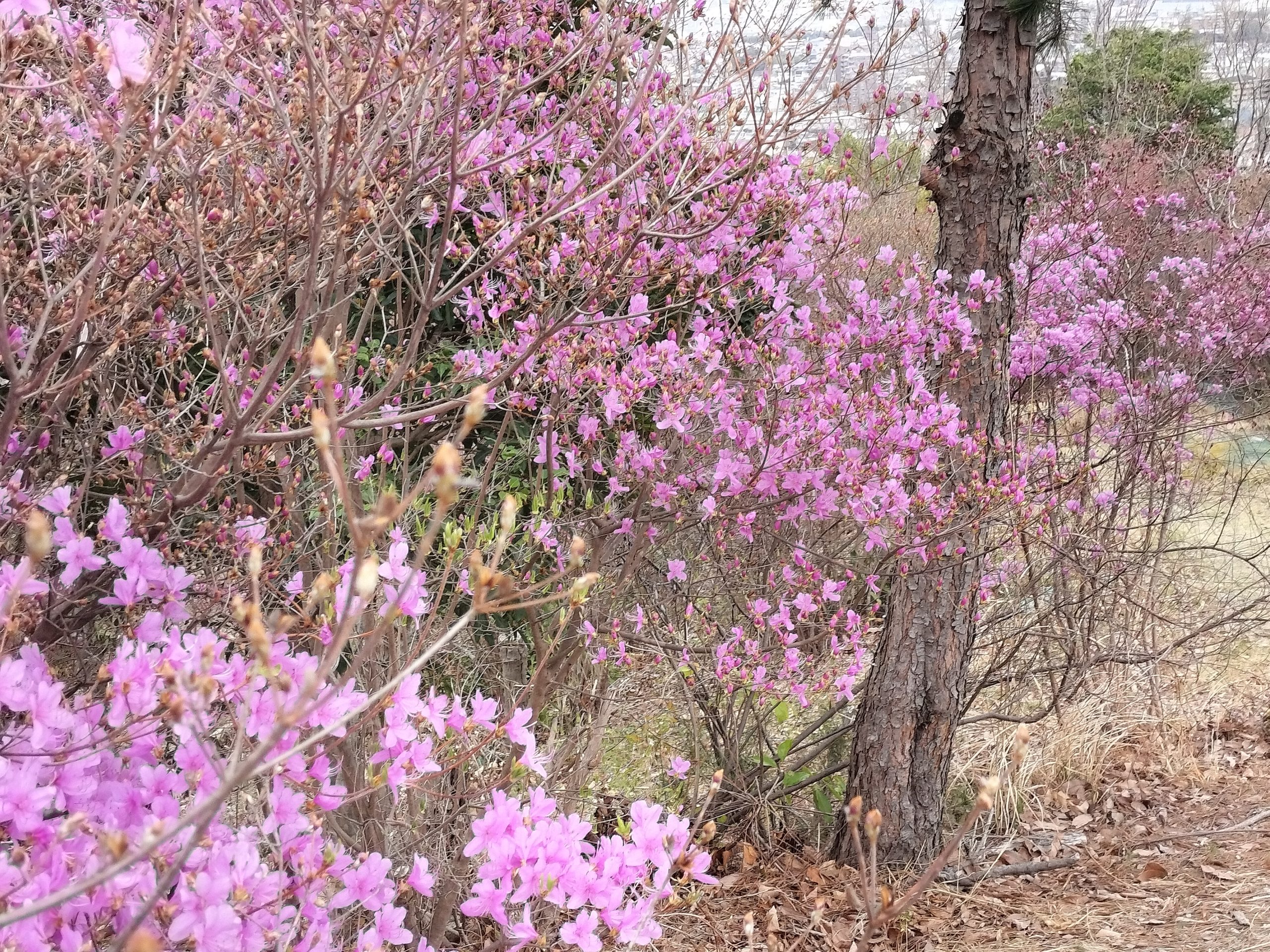 山手台南公園の桜も咲き始めました。 ヤマツツジも咲いて 綺麗です。